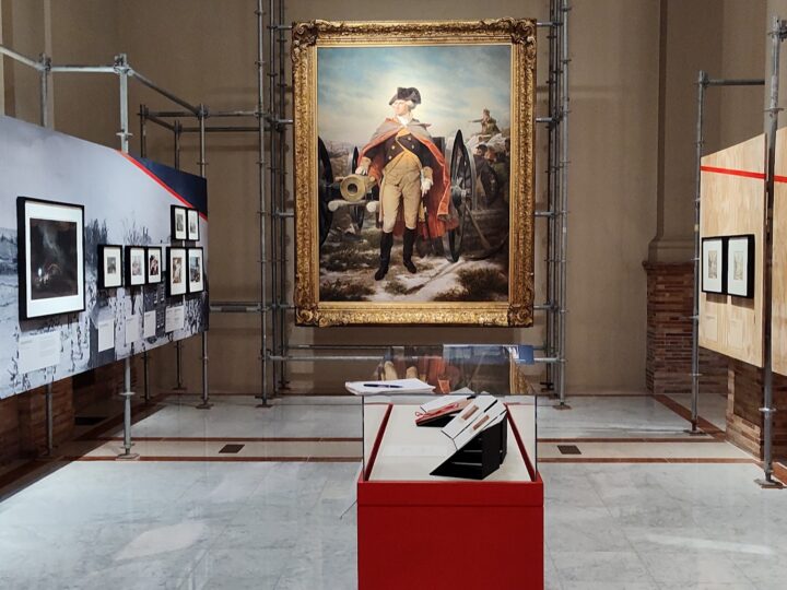 Highlights include a reimagined Boston Massacre engraving featuring Crispus Attucks, portraits of Benjamin Franklin and George Washington, and images from Boston’s abolitionist, feminist, and civil rights movements. Among them is Emanuel Leutze’s monumental Washington at Dorchester Heights (1852), newly conserved and brought down from its longtime place high above visitors in the BPL’s Washington Room. Seen at eye level for the first time in decades, the painting reveals previously illegible details uncovered during recent conservation work, offering the public an unprecedented opportunity to encounter this historic icon up close.